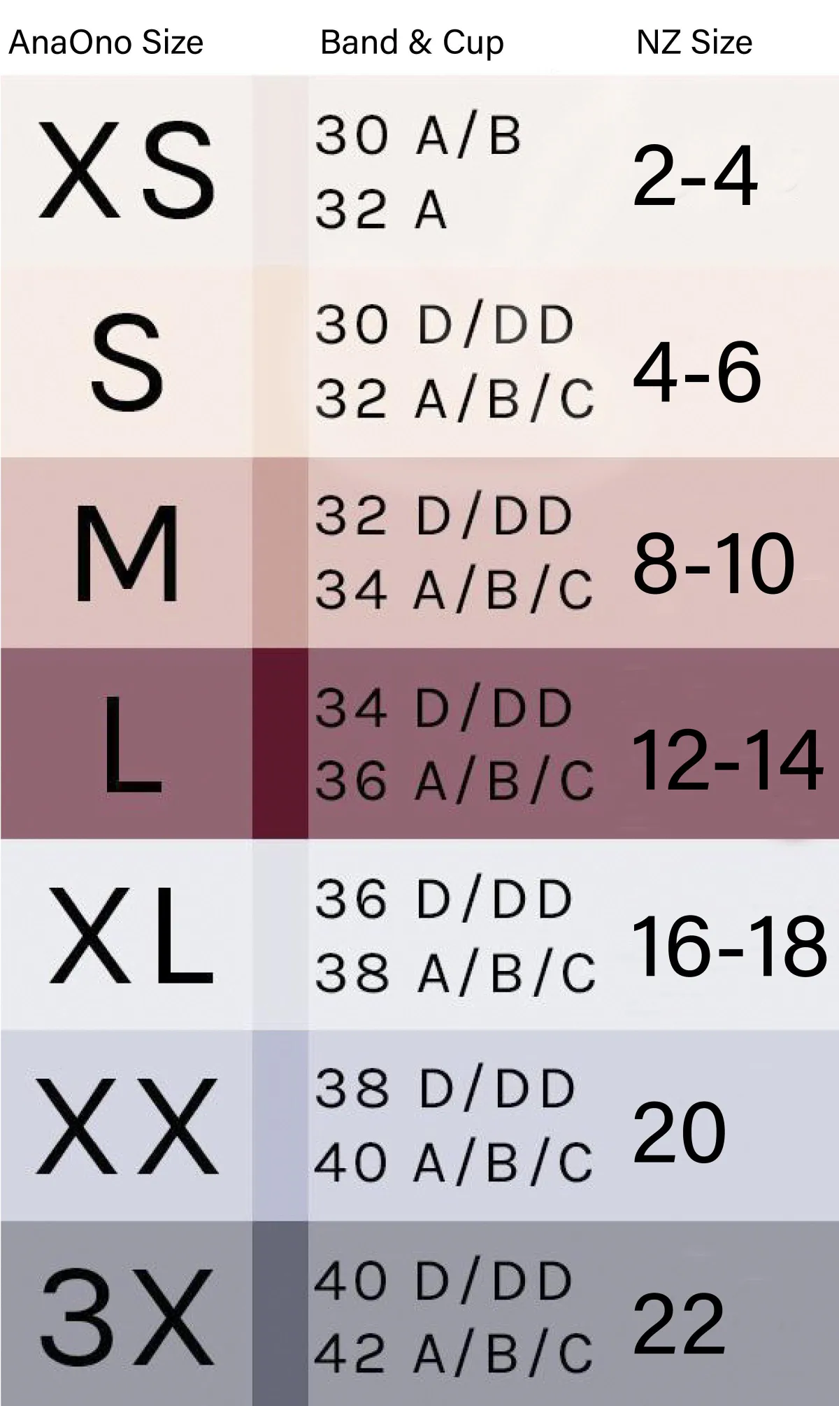 Use the size chart to work out your AnaOno size.