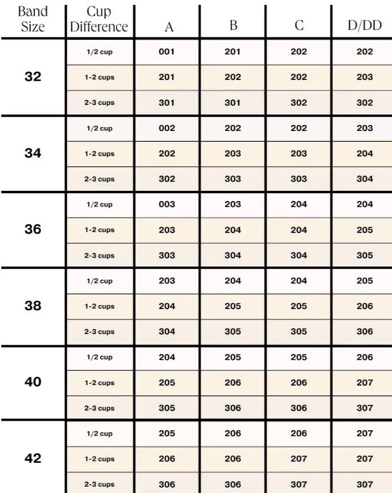 Find your normal bra measurement and choose which cup size you would like.